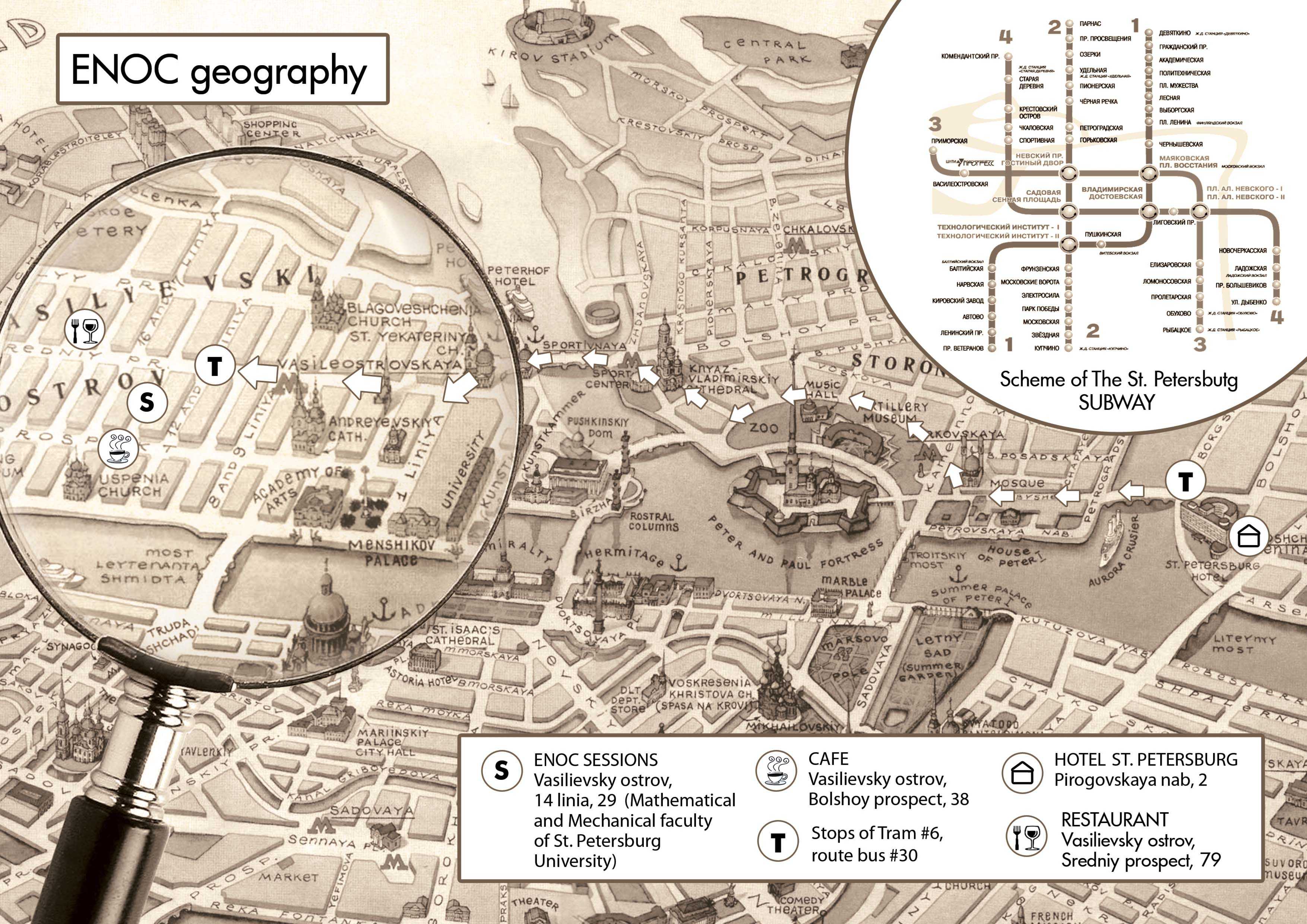 ENOC'08 GEOGRAPHY: Map of the city center (PDF,144Kb); Map of ENOC'08 objects (JPG, 811Kb).